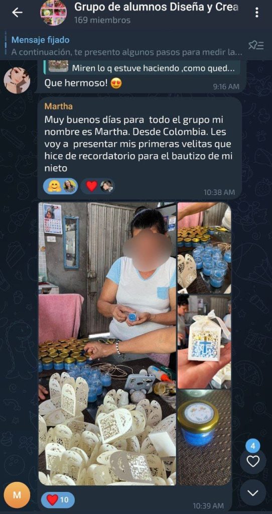 Nuestra profesional Yuly Rivas, migrante que paso por momentos sumamente difíciles llenos de angustia  pero que la llevaron a emprender y a crear el  programa de capacitación- Diseña y Crea Velas Artesanales-aprovecho su habilidad y su tiempo para tener uno de los cursos mejor valorados dentro del mercado digital. Actualmente nuestro programa cuenta con cinco estrellas y con más de 2,500 estudiantes en todo el mundo.
